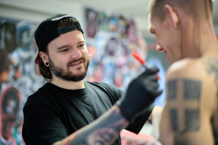 Meet Kenny, een ervaren tattoo artist uit Roeselare, België. Kenny is al sinds 2013 actief in het tattoovak en sinds 2021 eigenaar van Hannon Tatttoo Studio Izegem. Sinds zijn jeugd is Kenny gepassioneerd bezig met tekenen en creëren, gedreven door zijn betrokkenheid bij de skatecultuur en bewondering voor graffiti en skateboard designs. Zodoende is hij in de tattoowereld terechtgekomen. Na het op papier zetten van ideeën voor vrienden, ontstond het idee dat hij zelf kon leren tatoeëren.